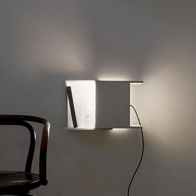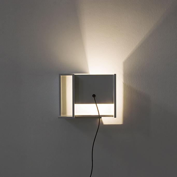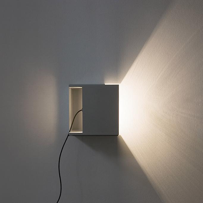 WANDLEUCHTE IN BELIEBIGER POSITION MDF HANDLACKIERT, MIT FAKTUR, LICHTGRAU (RAL 7035) GLÜHBIRNE SCHNURSCHALTER, KABEL SCHWARZ CA. 26CM X 26CM X 29CM